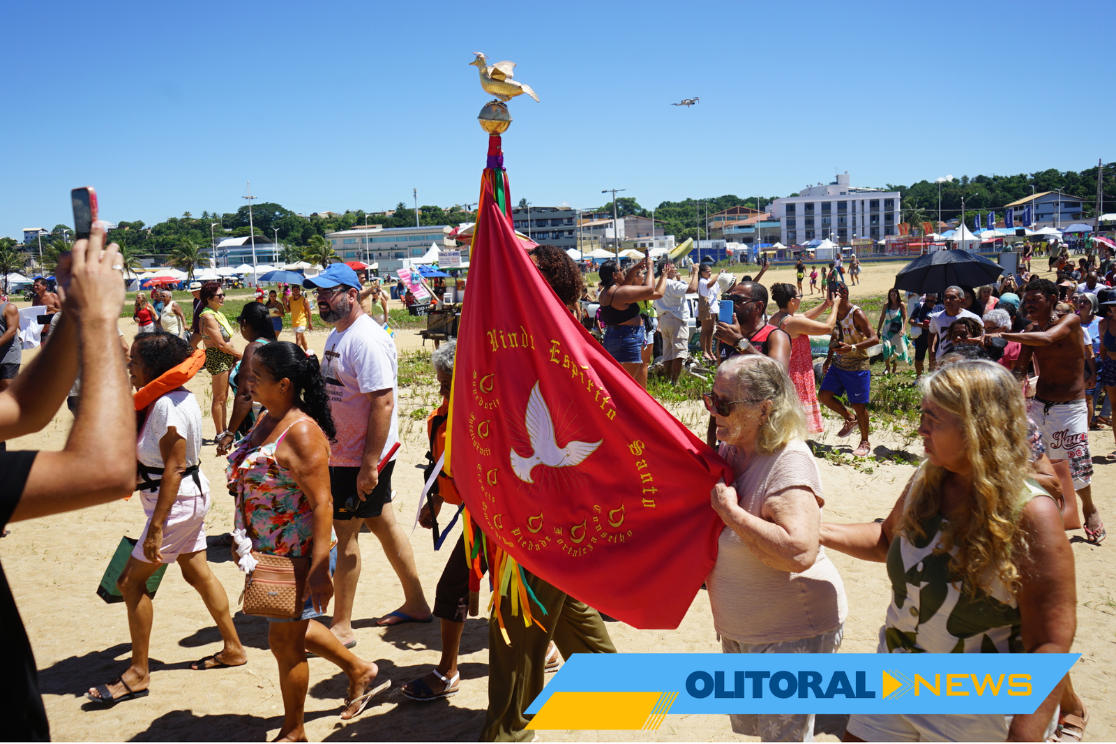 O domingo era o dia mais aguardado da festa. Pela manhã, uma banda de fanfarra percorria as ruas da cidade, anunciando que a missa logo iria começar. Após a celebração religiosa, acontecia o ponto alto do evento: a procissão marítima. Nela, os participantes, acompanhados pelo Divino e pela fanfarra, embarcavam em barcos, todos decorados com bandeirinhas coloridas, confeccionadas por moradores de diversas religiões, não apenas católicos. Juntos, celebravam e expressavam gratidão a Deus, em um momento de devoção.