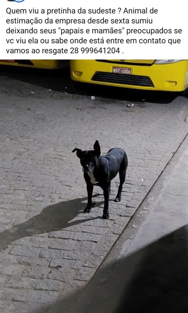 Cadela que vivia em pátio de empresa desaparece em Marataízes e causa comoção nas Redes Sociais