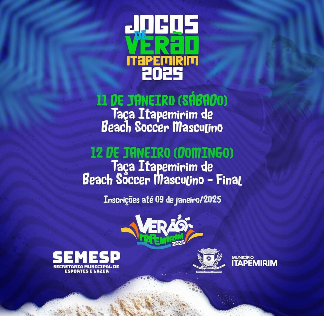 Venha fazer parte dessa festa esportiva e prestigiar os talentos do beach soccer local! O evento faz parte da programação oficial dos Jogos de Verão Itapemirim 2025, que promete agitar a temporada com diversas modalidades e atividades para toda a família.