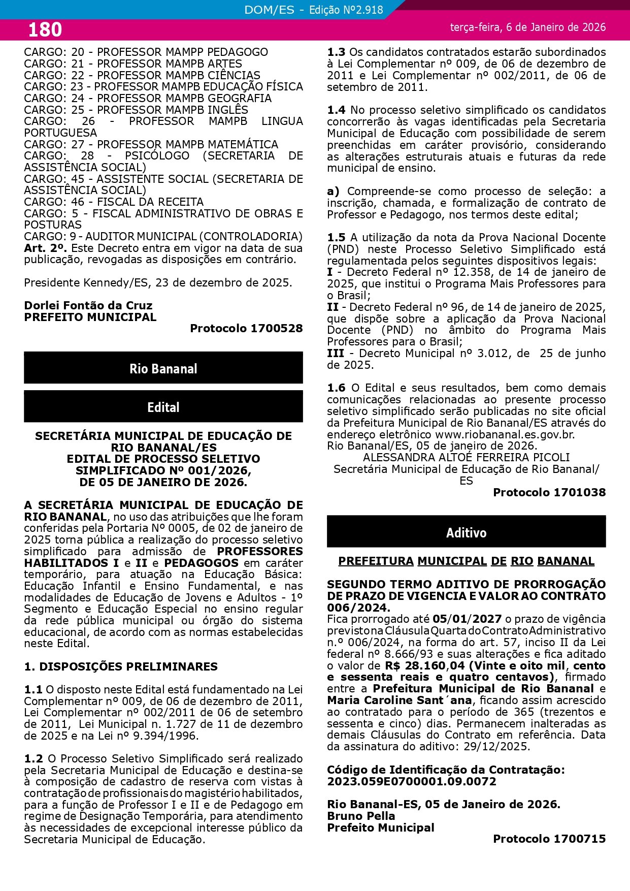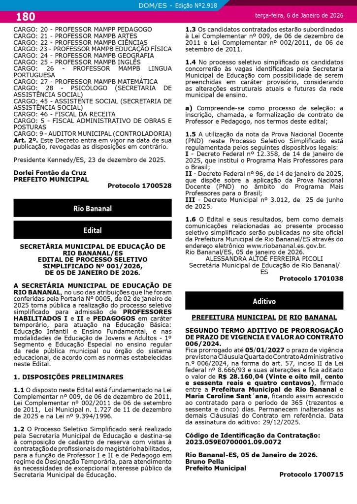 Embora o decreto tenha sido assinado no dia 23 de dezembro, a homologação só passou a ter validade legal após a publicação no Diário Oficial dos Municípios. O concurso aguardava análise administrativa desde a divulgação do resultado final, ocorrida em junho do ano passado.